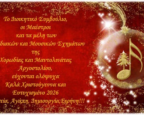 ΕΥΧΕΣ , ΤΡΑΓΟΥΔΙΑ ΚΑΙ ΚΑΛΑΝΤΑ Από την ΧΟΡΩΔΙΑ & ΜΑΝΤΟΛΙΝΑΤΑ ΑΡΓΟΣΤΟΛΙΟΥ Αυτές τις γιορτινές μέρες τα σχήματα του συλλόγου μας θα τραγουδήσουν