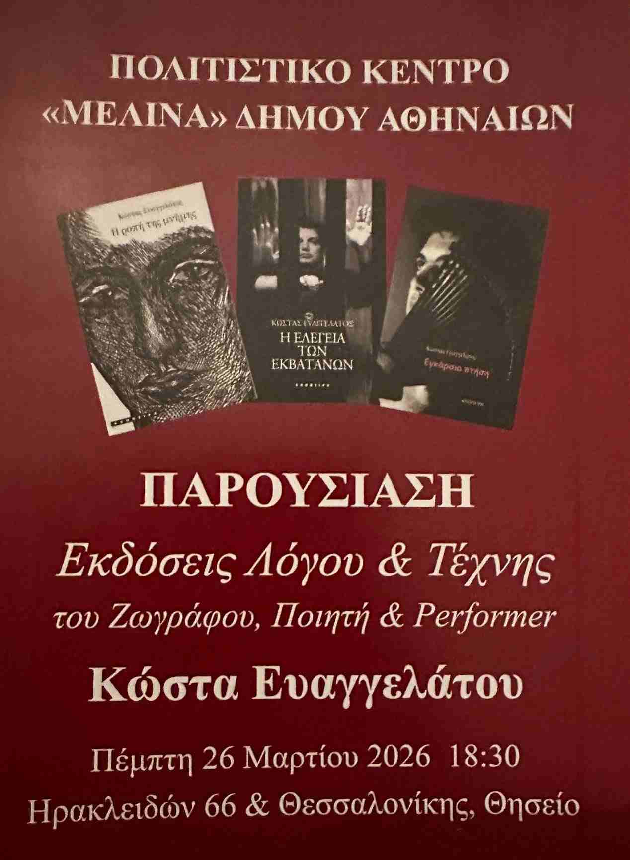 ΚΩΣΤΑΣ ΕΥΑΓΓΕΛΑΤΟΣ. ΕΠΕΤΕΙΑΚΕΣ ΕΚΔΗΛΩΣΕΙΣ, ΜΑΡΤΙΟΣ 2026