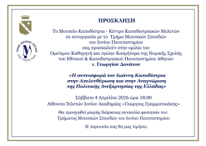 Oμιλία του Ομ. Καθηγητή Γεωργίου Δονάτου: «Η συνεισφορά του Ιωάννη Καποδίστρια στην Απελευθέρωση & στην Αναγνώριση της Πολιτικής Ανεξαρτησίας της Ελλάδας»