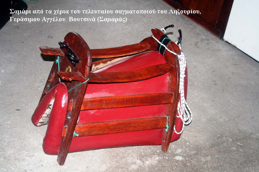 Θυμόταν την κάθε λεπτομέρεια αυτής της βιοποριστικής εργασίας, του σαγματοποιού και μιλούσε με καμάρι γι’ αυτήν. Πληθωρικός όπως ήταν μου εξιστόρησε το 2001 το κάθε βήμα της κατασκευής του σαμαριού.
