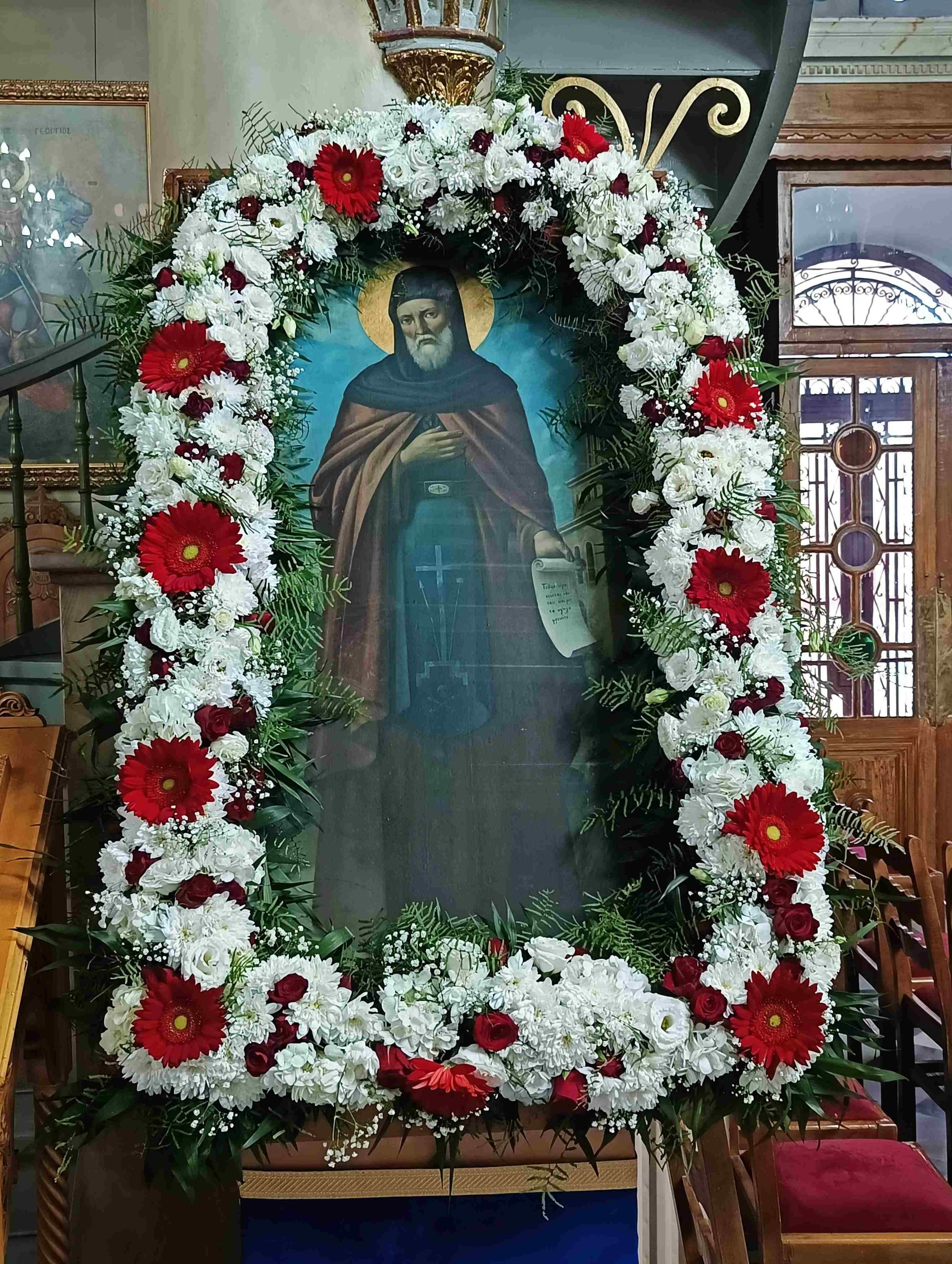 Η εικόνα του Αγίου, στολισμένη με άνθη, δέχτηκε τις προσευχές και τις ευχές των πιστών, μεταδίδοντας συγκίνηση και πνευματική γαλήνη.
