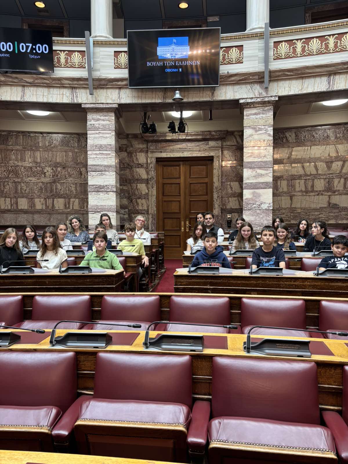 Στο πλαίσιο του εκπαιδευτικού προγράμματος που υλοποιεί το Ίδρυμα της Βουλής, οι μικροί επισκέπτες της ΣΤ΄τάξης περιηγήθηκαν στους χώρους του κτιρίου, ενημερώθηκαν για την ιστορία του και τη λειτουργία του Κοινοβουλίου.