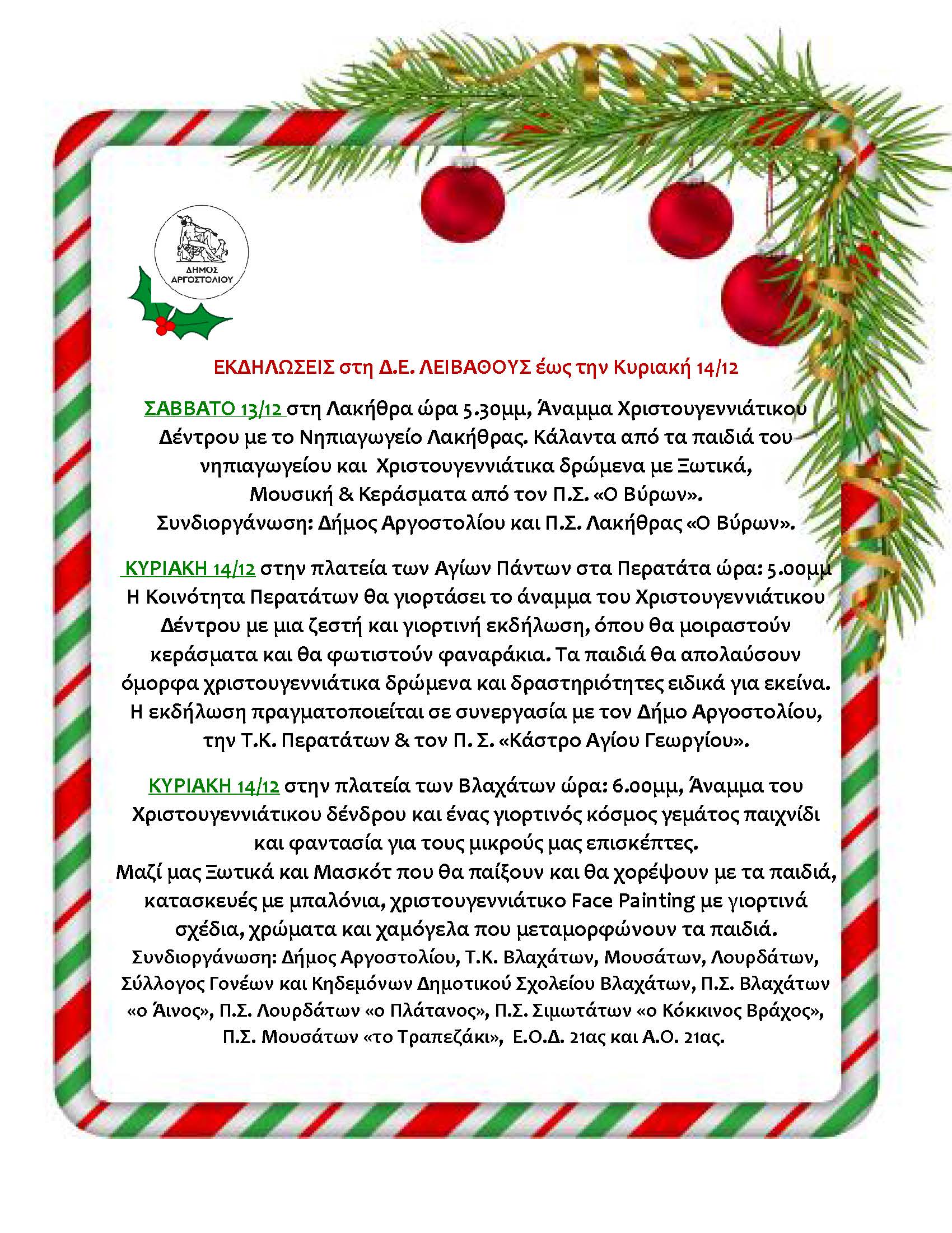 ΣΑΒΒΑΤΟ 13/12 στη Λακήθρα ώρα 5.30μμ, Άναμμα Χριστουγεννιάτικου Δέντρου με το Νηπιαγωγείο Λακήθρας.
