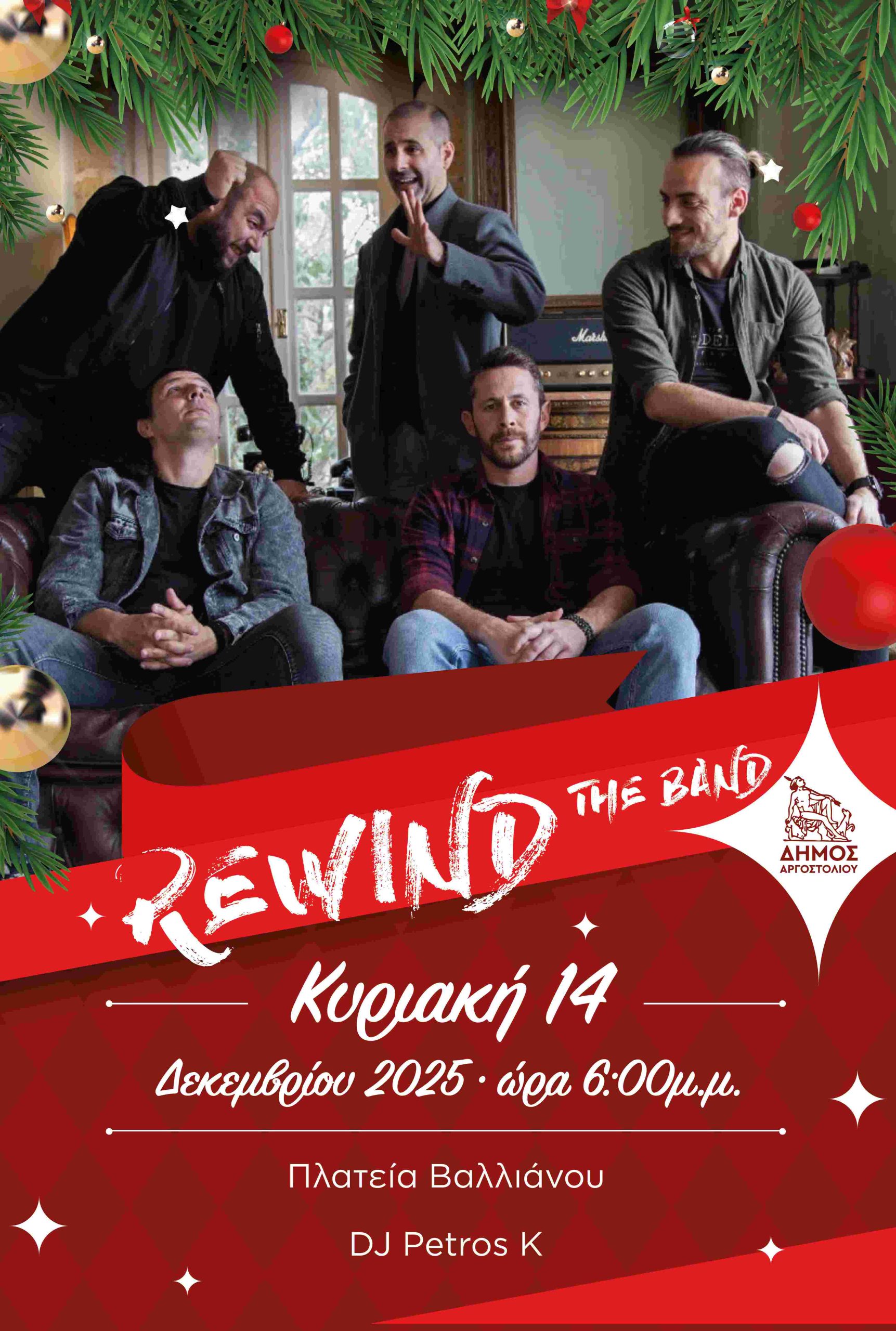 Ο Δήμος Αργοστολίου διοργανώνει εορταστική συναυλία με το μουσικό συγκρότημα REWIND The Band.