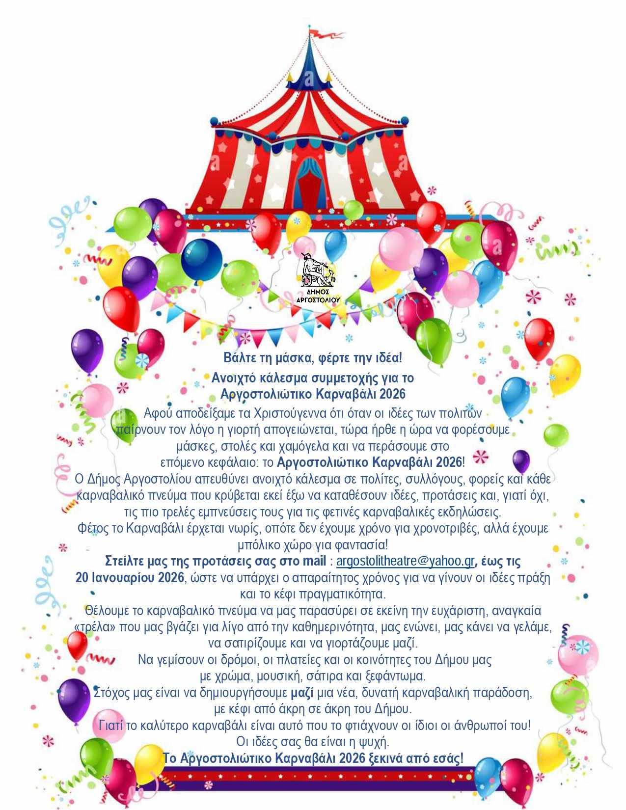 Το Αργοστολιώτικο Καρναβάλι 2026 ξεκινά από εσάς!