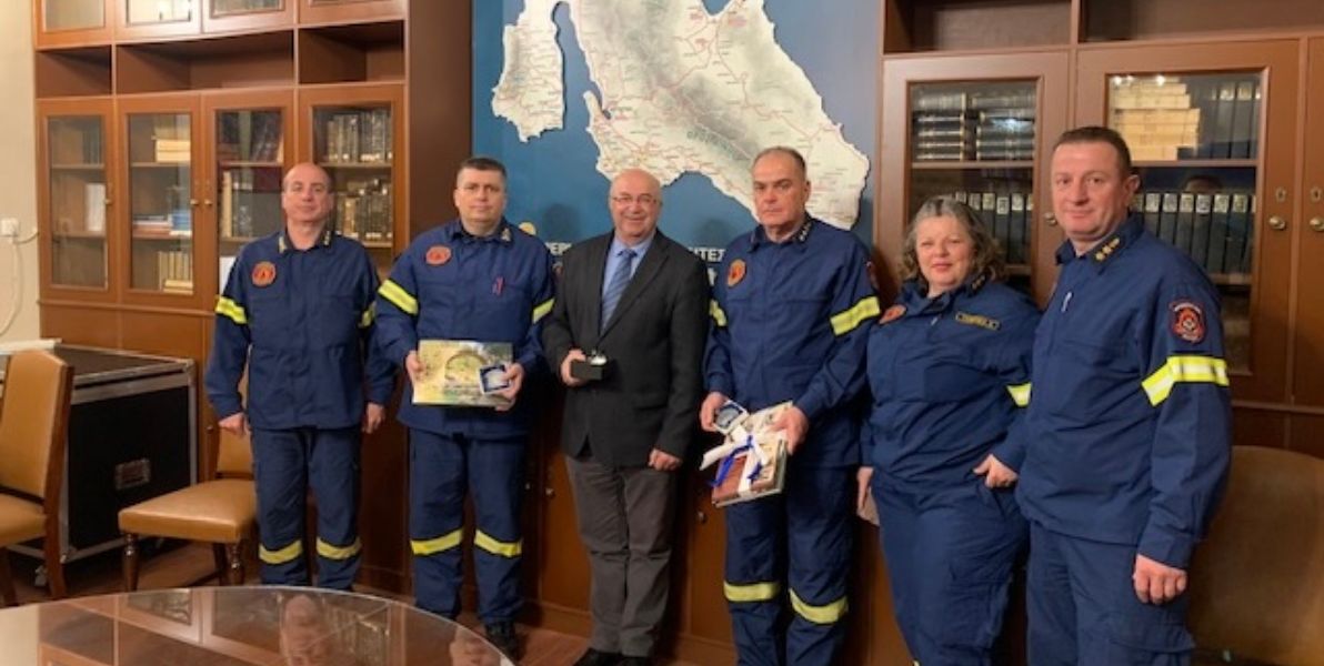 Τον Αντιστράτηγο κ Δημήτριο Μπριόλα, Γενικό Επιθεωρητή Νότιου Ελλάδος, τον Υποστράτηγο κ Κωνσταντίνο Γόντικα, Συντονιστή Επιχειρήσεων, Πελοποννήσου, Δυτικής Ελλάδος και των Νήσων Κεφαλληνίας, Ιθάκης και Ζακύνθου, και το επιτελείο τους. Στην συνάντηση παραβρέθηκαν ο Διοικητής και ο Υποδιοικητής της Πυροσβεστικής Υπηρεσίας Αργοστολίου κκ Αναστάσιος Ποταμιάνος και Χριστοπαναγής Κουγιανός.
