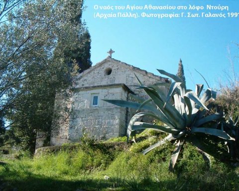 Στο λόφο που υπήρχε η αρχαία ακρόπολη και μέρος της παλαιάς πόλης της Κεφαλληνίας, Πάλλη, βρίσκεται σχεδόν στο κέντρο αυτού του βουνίσιου υψώματος , το ξωκλήσι του Αγίου Αθανασίου, κτισμένο πάνω σε αρχαίο ναό. Όλη αυτή την περιοχή την ονομάζουμε από παλιά,