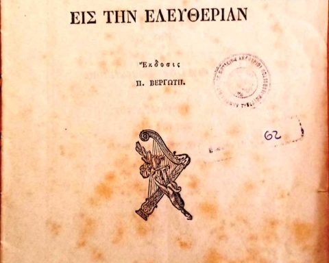 Στα 1880 ο Κεφαλλονίτης λόγιος και διανοούμενος, Παναγής Βεργωτής, όντας στο πηδάλιο του Πετριτσείου Γυμνασίου Ληξουρίου, εξέδωσε μικρό φυλλάδιο με τον «Ύμνον εις την Ελευθερίαν» , του Διονυσίου Σολωμού. Το φυλλάδιο είναι αφιερωμένο: «Εις την σπουδάζουσαν νεολαίαν του Ληξουρίου αφιερόνει τούτο ο
