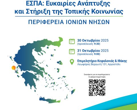 Η Γενική Γραμματεία ΕΣΠΑ του Υπουργείου Εθνικής Οικονομίας και Οικονομικών διοργανώνει στην Περιφέρεια Ιονίων Νήσων Διημερίδα με θέμα «ΕΣΠΑ: Ευκαιρίες Ανάπτυξης και Στήριξη της Τοπικής Κοινωνίας», η οποία θα πραγματοποιηθεί στις 30 και 31 Οκτωβρίου 2025 στο Επιμελητήριο Κεφαλονιάς & Ιθάκης στο